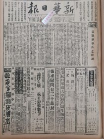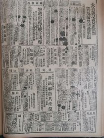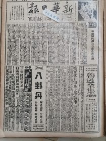 1938年新华日报 我空军昨天飞台湾,炸毁敌机40余架。济宁日寇偷渡南阳,湖北击退。新生活运动与抗战。边区的工人运动 日本人民反对侵略战争。敌大批逮捕革命青年 豫晋边境仍在激战中,黄河阵线防务巩固 鲁境战事左翼较烈,济宁敌偷渡南阳湖被击退,大长沟血战竟日毙敌四百 芜湖战况沉寂,我机两架昨飞芜炸敌;杭州敌增兵企图偷渡 〔陕甘宁)边区的工人运动(通讯)