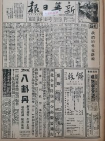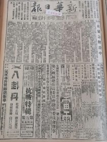 1938年新华日报 加紧侨胞抗战工作。八路军克查察东赤城。第二届世界青年大会重要文件,华沙和平公约全文。金轮峰歼敌记 岩赣山血战 敌犯信阳东马蹄庙我正围歼 .华北战况:涞源敌千畲犯插箭岭被击溃,绥境连日有激战敌伤亡惨重.八路军克察东赤城.皋落闻喜敌势动摇.晋南我军猛攻廿里岭.沿江战况:漳源口附近激战中,岩赣山血战四日毙敌二千余,我军进袭沁阳.海门湾南澳岛敌舰驶大鹏湾.