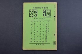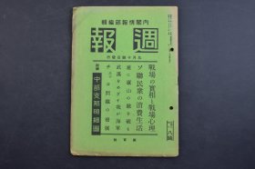(己6826)史料《周报》1册 1938年5月18日 中国军的宣传战术 徐州方面的战况 郭沫若 江北的战况进展 扬子江北岸地区 黄河以北 山西京汉线方面要图 阜宁方面要图 华南地区 蒙城固镇方面要图 厦门附近要图 厦门岛 厦门市 厦门大学 华北方面 十里庙附近 芜湖方面的南陵、埠宁西河镇方面 陇海线碣县 华南方面 龙岩 长汀等 内阁情报部 内阁印刷局 尺寸 21*14CM