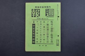(己2794)史料《周报》1938年10月19日 蒋政权与南洋华侨 新加坡华侨的水上生活 华南作战开始 华中方面战况要图 江北战线 信阳方面要图 沙窝方面 新店方面要图 江南战线 富水河方面 隘口街方面 华南作战的新展开 航空战 破坏广九铁路 攻击粤汉铁路等 内阁情报部 内阁印刷局 尺寸 21*14CM