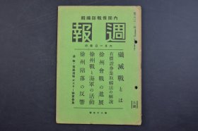 (己2753)史料《周报》1938年6月1日 歼灭战 徐州战线前进的日军部队 山顶射击 徐州会战的进展 徐州大包围阵 江北正面部队 徐州附近战况要图 鲁南部队 台儿庄以西的地区 陇海线附近要图 鲁西方面 山西京汉线方面要图 徐州战与海军的活动 徐州沦陷的反响等 内阁情报部 内阁印刷局 尺寸 21*14CM