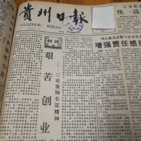 社论:艰苦创业,二论发扬长征精神。第二版,险峰机床厂试车新产品照片!册亨灵芝、竹荪酒远销海外!第三版,海湾战况!第四版,热烈祝贺贵州省工程咨询公司正式成立!《贵州日报》