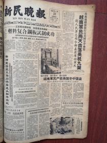 新民晚报1965年4月23日上钢三厂塑料复合钢板试制成功,附照片,王崇伦刘金堂照片,纪念列宁诞辰95周年,徐锡昌养牛诀,《绿衣红心》连载,28届世乒赛战况
