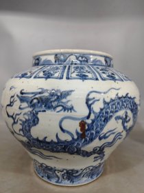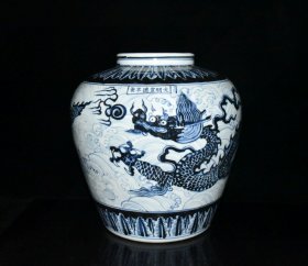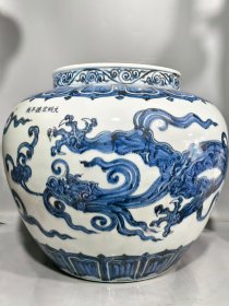 青花海水龙纹罐【 32x30cm 】