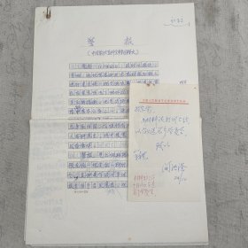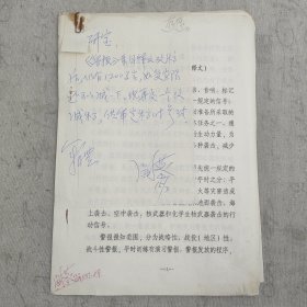J49-21: 原总参防突办副主任、“林办”参谋阎洪滏 拟写"军事大百科全书条目释文"手稿一份“警报” 8开8页(初稿 有修改) 并附信札1页