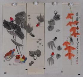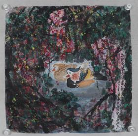 齐派再传弟子、中国文化部老艺术家书画院理事、北京齐白石艺术研究会常务理事 张连刚(红霜)2005年作 国画作品《鸳鸯图》一幅(纸本软片,画心约4.3平尺)HXTX234953