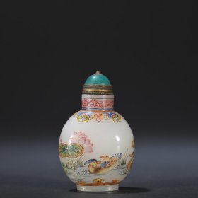 回流 料胎画珐琅鸳鸯戏水鼻烟壶