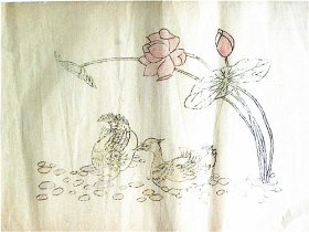 年画缩样散页画一张:鸳鸯并蒂莲(李惠 作)