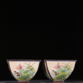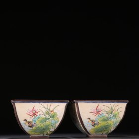 清 铜胎画珐琅鸳鸯戏水纹笔洗一对