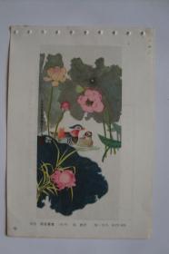 荷花鸳鸯 年历年画缩样散页 32开1页