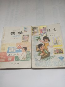 五年制小学课本:语文、数学(第七册 )两册合售