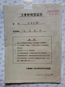 中华人民共和国工会入会志愿书(张锦蓉)工会干部登记表,附会员详细登记表.交通部西南铁路局政部文工队(G11