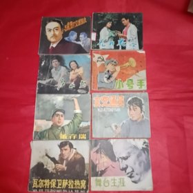 影剧版连环画册《庐山恋/花开花落/董存瑞/女交通员/舞台生涯/小号手/《瓦尔特保卫萨拉热窝/与魔鬼打交道的人》8本合售