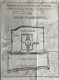 【极稀】1749年,雅克 尼古拉斯 贝林(Jacques Nicolas Bellin)《中华帝都北京城规划图》位置39度54分。法语,铜版雕刻,防酸纸,画面16x21cm。