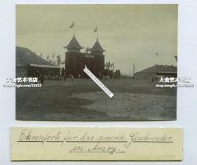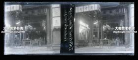 清代印支中国,云南,越南交界地带,武将高官人家祠堂正堂旧影玻璃立体照片底片一张,可见“正气扶轮”的幔帐,兵器架,堂前五供,对联,桌案家具,“庆中元(节)”灯饰等。10.6X4.4厘米