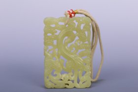 和田玉龙牌 规格:7.7*4.1*0.5厘米 重 22克。 玉质细腻温润,造型精致大方,雕工精湛,包浆古朴自然,有着重要的历史文化内涵,极具收藏。