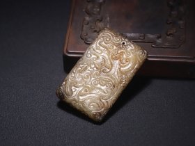 和田玉龙牌 规格:6.3×2.3×0.9厘米 重 29克。 玉质细腻温润,造型精致大方,雕工精湛,包浆古朴自然,有着重要的历史文化内涵,极具收藏。