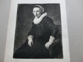 【百元包邮】《伦勃朗画作:一位荷兰女孩的肖像》(BILDNIS EINER JUNGEN HOLLÄNDERIN)1878年 蚀刻版画 纸张尺寸约28×18.8厘米 (货号T001724)