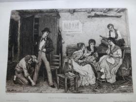 1883年德国艺术大师系列蚀刻铜版画《等待忏悔的盗贼》—奥地利画家“Ludwig Johann Passini (1832-1903) ”作品 版画家:WILLIAM UNGER 雕刻 48x33cm