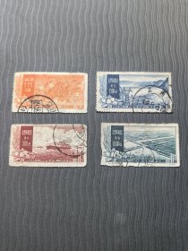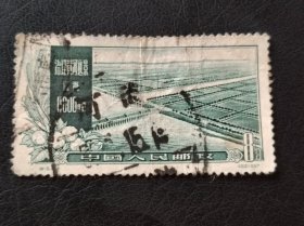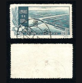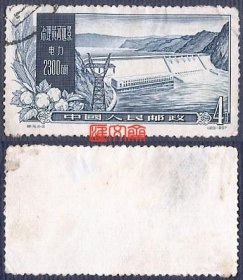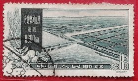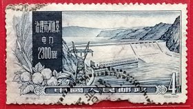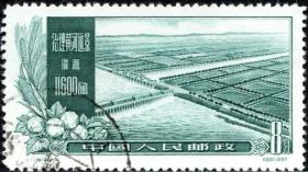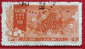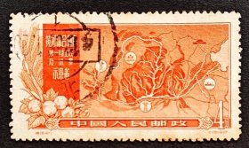 老纪特邮票 特19(4-1)治理黄河 4分 黄河综合利用第一期工程及远景示意图 治理黄河示意图 黄河地图 雕刻版 1957年12月30日发行 盖有新疆和田邮戳 洪水 治水