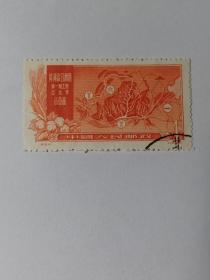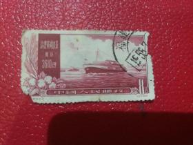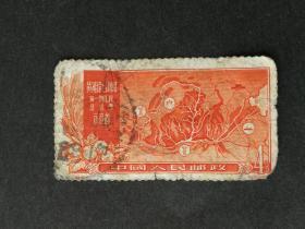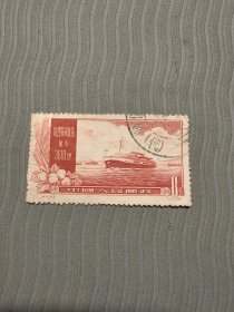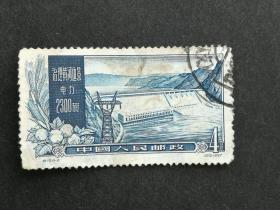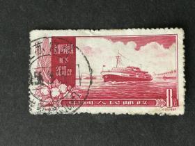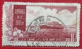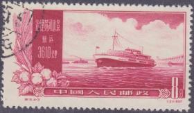 老纪特邮票 特19(4-3)治理黄河 8分 治理黄河远景 航运 3610公里 轮船 雕刻版 1957年12月30日发行 盖有复打戳 云南昆明邮戳 洪水 治水