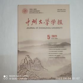 中州大学学报 2021年第5期。《广韵》《集韵》中“㦼”的字形与词义考,金欣欣。中国政治文献外译目的研究系统的构建,陈双双。高校对外汉语教师跨文化交际障碍研究,梁海 李畅。五四新文化运动时期《新青年》对女性解放的推动,曹晓辉。红军西征宁夏革命标语形成及其价值体现,张玉梅。中国传统美学视角下的漏窗艺术探析,袁新华。评荷兰华人女作家林湄,林祁。评杜禅《先知开花》,刘海燕。中国当代生态批评理论构建研究。