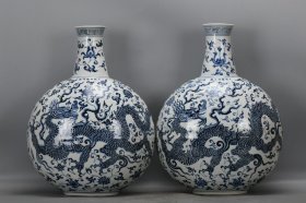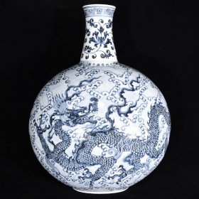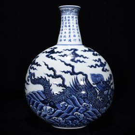 明宣德青花海水龙纹抱月瓶,45×35×22,价格:2550