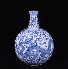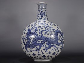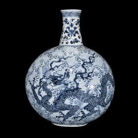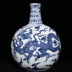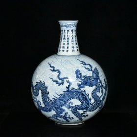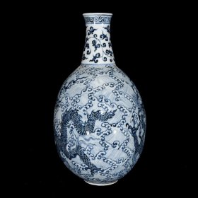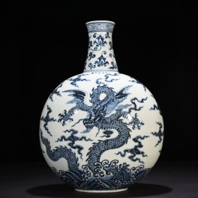明宣德青花龙纹抱月瓶 规格:高26公分 口径3.7公分 肚径16公分
