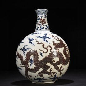 明宣德青花釉里红龙纹扁瓶抱月瓶,高45cm直径32.5cm