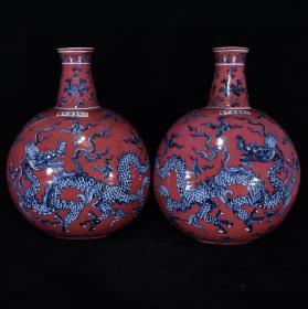 明宣德青花釉里红云龙纹扁瓶抱月瓶45*33厘米