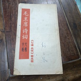 毛主席诗词大楷字帖:七律长征等五首(本书品不好 封面封底有残破, 前后皮及内页分别盖有毛主席头像图案大红印章共三枚各不相同、并盖有一枚未知文字大红印章,详看如图)具有收藏价值。