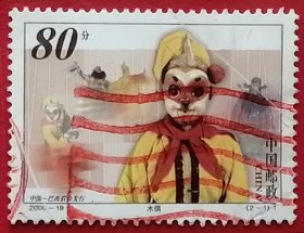 袁袁收藏中国邮票 2000-19 中国巴西联合发行 木偶和面具 木偶孙悟空 2-1 信销
