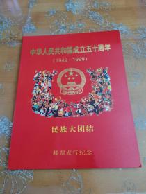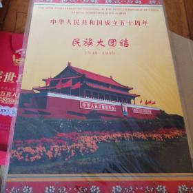 《中华人民共和国成立五十周年(1999年)民族大团结纪念邮品》56捆(56个民族)一共约有上万张以上(不是正式邮票,无锡市长城集邮用品有限公司制作)。【尺寸】每张12 X 8厘米。