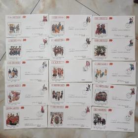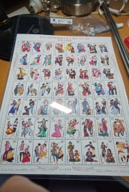 祖国万岁庆祝中华人民共和国成立50周年1949-1999民族大团结纪念邮票,全套56张合售面值4480分,邮票图名分别为各民族名称,周秀清绘画