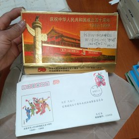 【集邮珍品 北京天安门首都建国五十周年庆祝活动筹备委员会寄发】中华人民共和国成立五十周年 1949—1999 民族大团结 纪念邮票实寄封(56枚全套)详见图片和描述