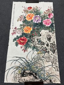 B49156号国画 大尺寸170×90cm 作者:张大壮 国画写意花卉兰草洞石 富贵牡丹 (1960年)庚子谷雨前夕游龙华赏牡丹竟日写生于杭州