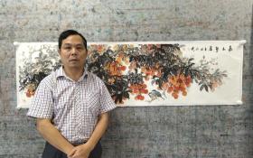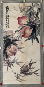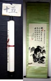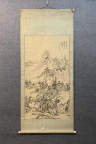 近代广东名家 郗圭卿 立轴老画《纸本手绘 漓江行舟图》上方行书诗一首 双木轴头 整体尺寸:142*43.5cm 画心尺寸:85*35cm(第48批 15号)