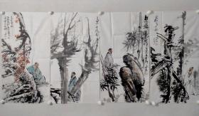 保真书画,张京城国画作品四条屏一幅89×48cm×4软片,张京城,字开石,号净禅居士。 中国美术家协会会员,青岛名家书画院院长,中国泰山禅道书画院院长,国家一级美术师。