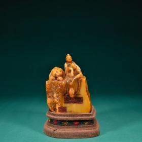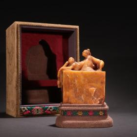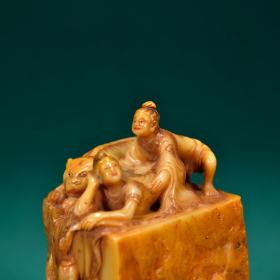 乾隆十八年内务府造办处监制·田黄石宫廷秘史图钮印章规格:高11cm宽9cm重877g(不含底座)