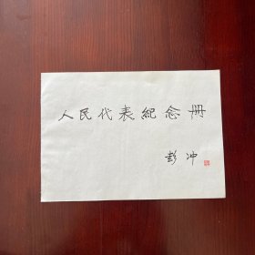 老一辈无产阶级革命家、全国人大副委员长彭冲题词签名钤印 纸单张单页
