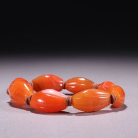 回流 南红瓜棱珠手串。