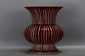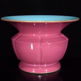 清乾隆胭脂红瓜棱华脖14×21.5,¥3080