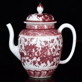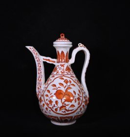 大明宣德年制矾红瓜果纹执壶,高32×22厘米
