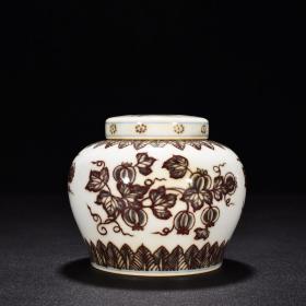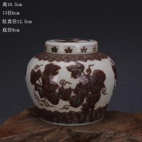 大明成化釉里红瓜果纹天字罐茶叶罐
