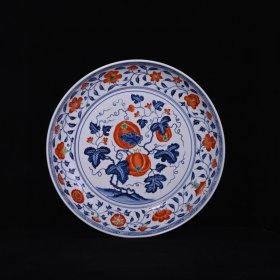 明宣德青花矾红瓜果纹盘,高7.5×45.5厘米