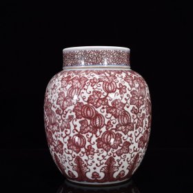 清乾隆釉里红瓜果纹盖罐。 规格22*18。