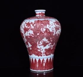 清雍正釉里红瓜果纹梅瓶。 规格31*21。