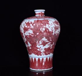 价格2100元 大清雍正年制松柴烧釉里红瓜瓞绵绵纹梅瓶 高24.7径11厘米2