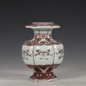 旧藏 明宣德釉里红瓜棱尊