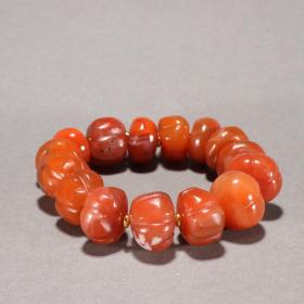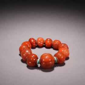 旧藏 保山南红瓜棱珠手串 .